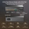 Conmutador Poe de 8 puertos de mokerlink, con 6 puertos poe, 2 enlaces ascendentes, 100 mbps, 78w AI detection, conmutador de red plug - and - Play de metal sin ventilador