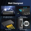 & nbsp; Gigabit Ports: Einschließlich 1 PoE In, 4 PoE Out, alle Ports unterstützen Gigabit 10/100/1000Mbps Geschwindigkeit automatisch adaptiv. 12Gbps Bandbreite.