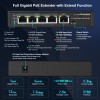 MokerLink 5-Ports Gigabit PoE Extender, IEEE 802.3af/at PoE Repeater, 100/1000Mbps, 1 PoE in 4 PoE Out PoE Passthrough Switch, Wandhalterung, PoE Extender/Injektor/Netzwerk Extender 3 in 1
