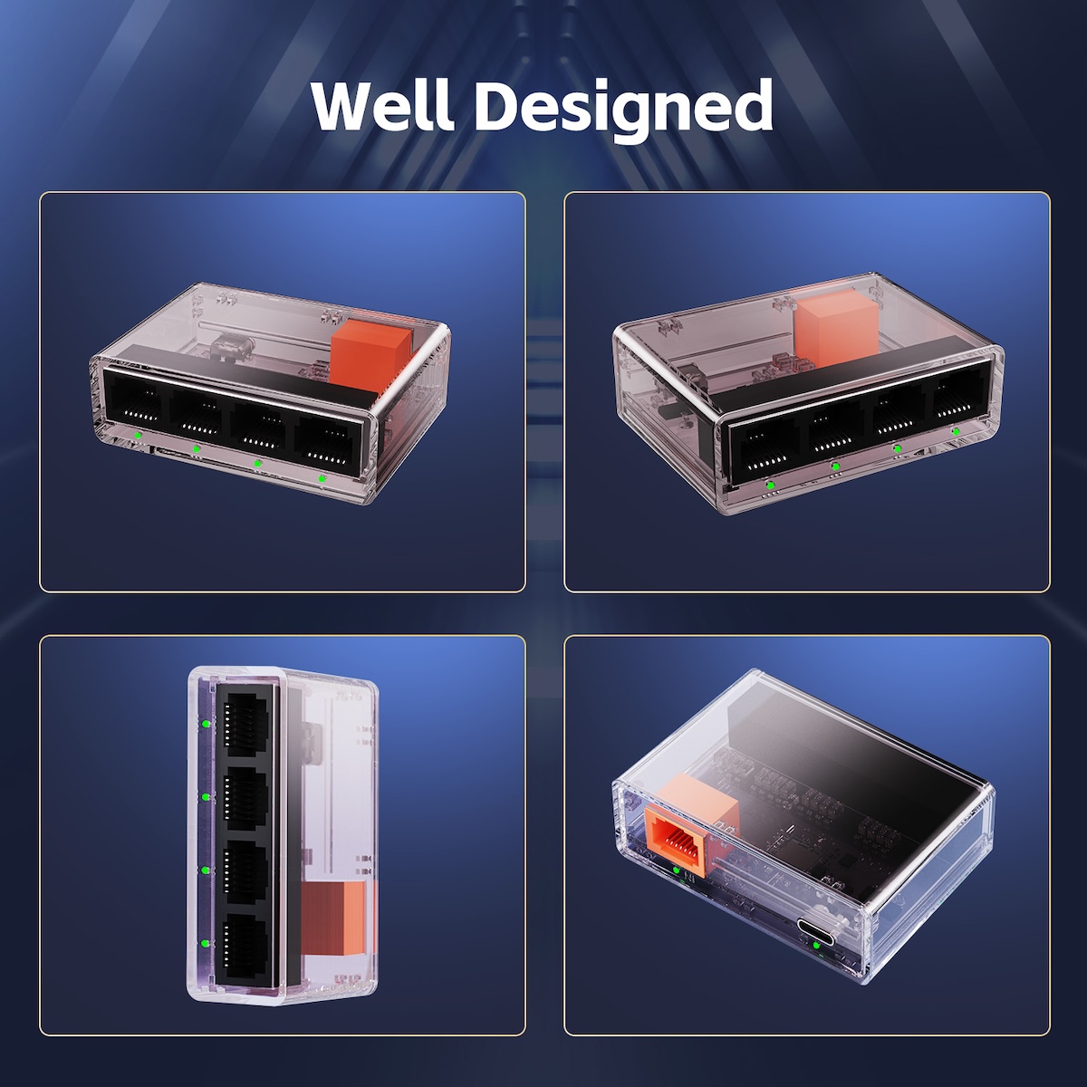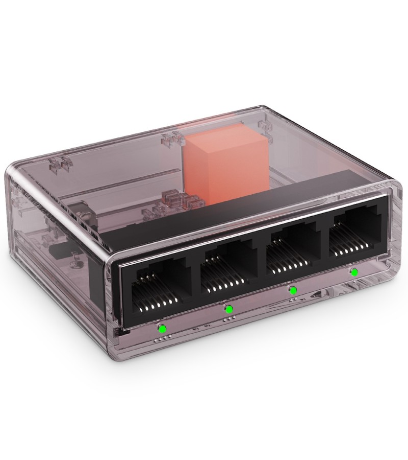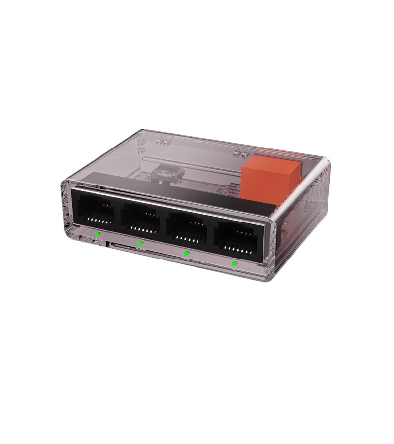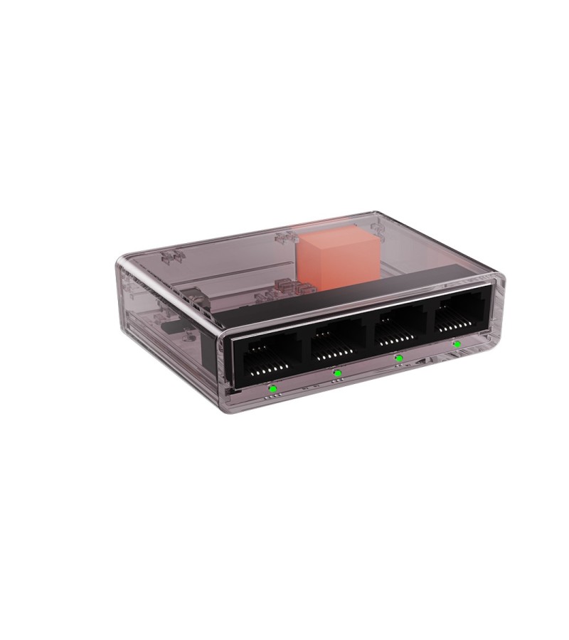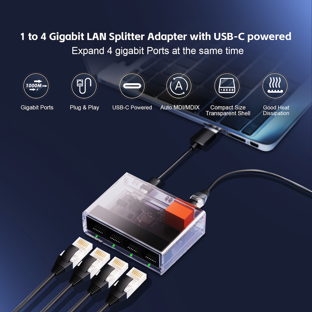 1 to 4 Gigabit Network Splitter, 5 Port Ethernet Switch, Type-C Power Supply, Transparent Shell Mini Size Plug and Play