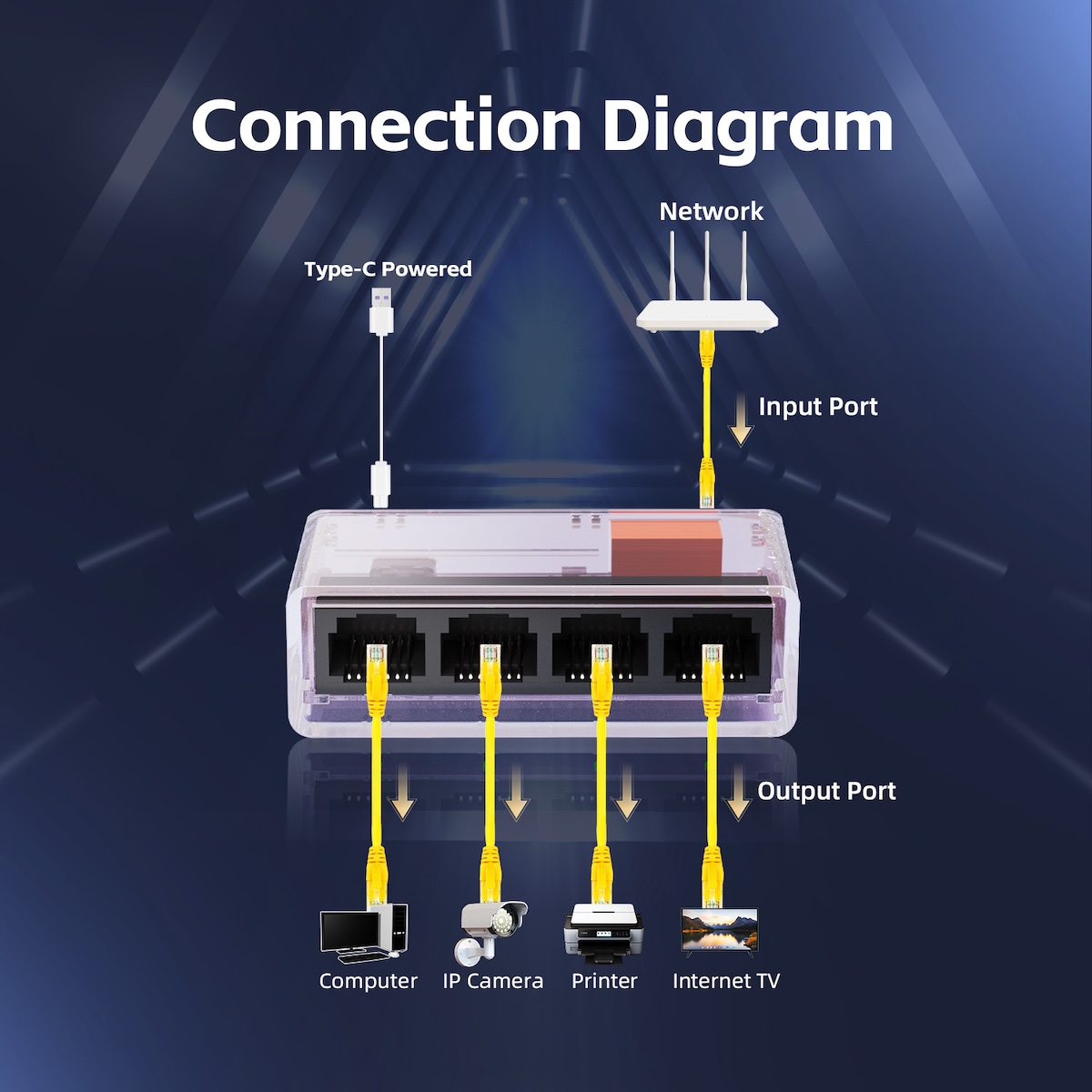| Product Name | 5-Port Gigabit Unmanaged Ethernet Switch with Typec-C Power Input |