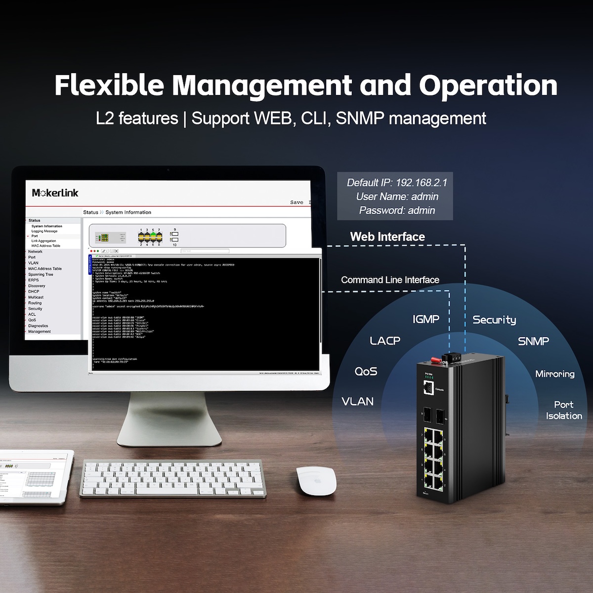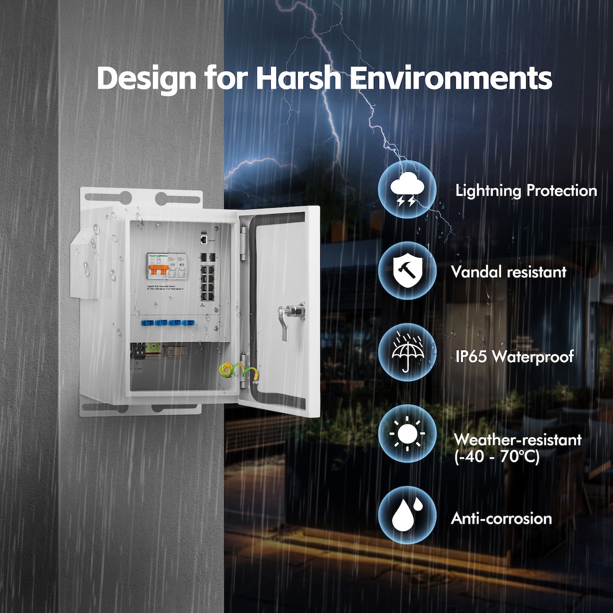 - Wide Application: With its industrial-grade durability—including extreme temperature resistance and lightning protection—it enhances industrial network reliability and safety, making it ideal for harsh environment deployments such as rail transit, safe cities, intelligent transportation, and outdoor monitoring.
