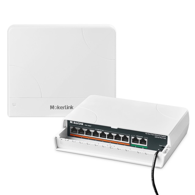 MokerLink 10 Port Outdoor PoE Switch, 8 PoE+ Ports, 2 Uplink, 10/100Mbps, 802.3af/at 120W, Weatherproof Fanless Unmanaged Plug and Play