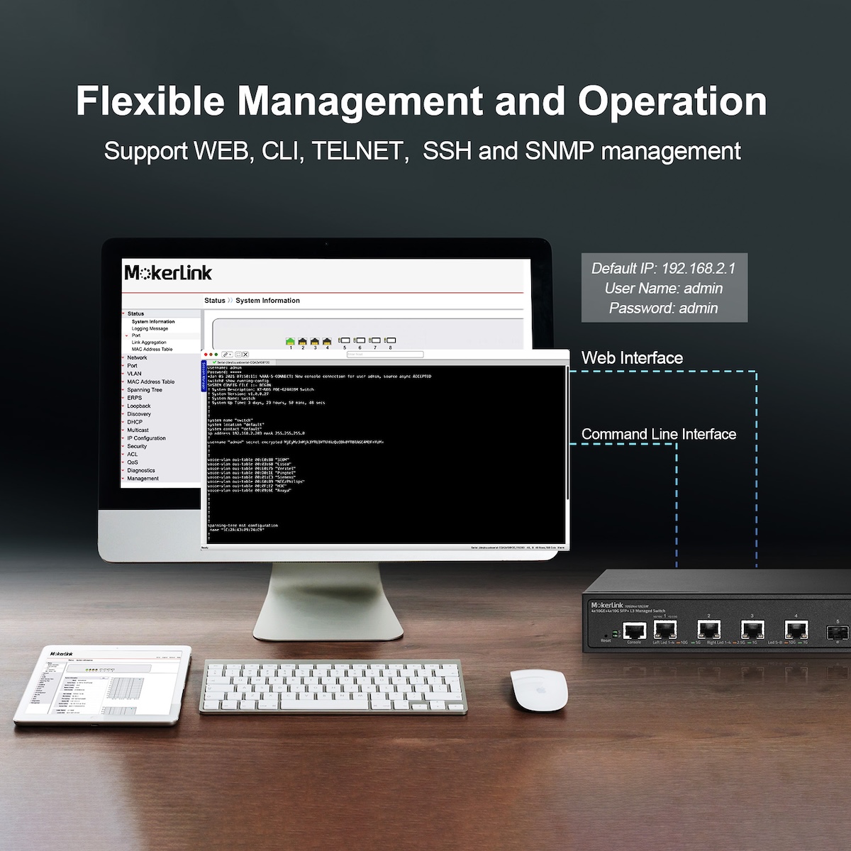 - Flexible management and maintenance via Console, Telnet, SSH, and other methods;