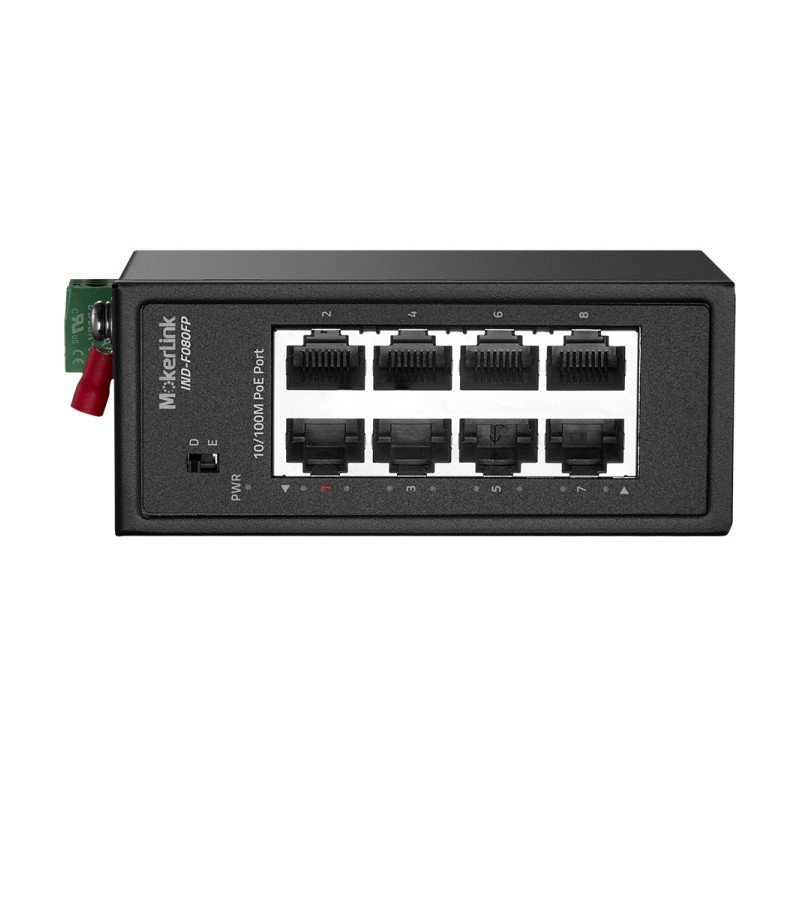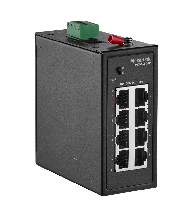 The IND-F080FP is a hardened 8-port Industrial PoE Switch, delivering non-blocking wire-speed performance in harsh industrial environments. It features 8x 10/100BASE-TX RJ45 ports, housed in a rugged IP40 enclosure with a redundant power system. It compatible with DIN rail and wall mounting for space efficiency The PoE ports 1-8 comply with the IEEE 802.3af/at standards and feature dual power inputs of 48–55Vdc. Using standard Cat5/5e/6 cables to transmit Ethernet data, the switch can simultaneously supply